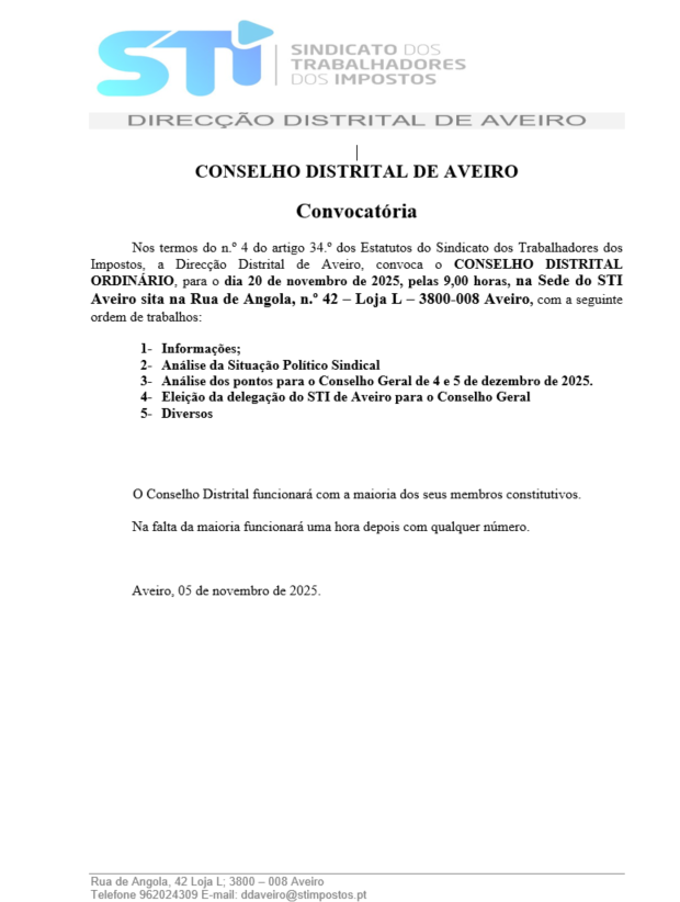 ELEIÇÃO DAS DIREÇÕES DISTRITAIS DE BEJA, BRAGA, CASTELO BRANCO, GUARDA, LISBOA, PORTALEGRE E VILA REAL