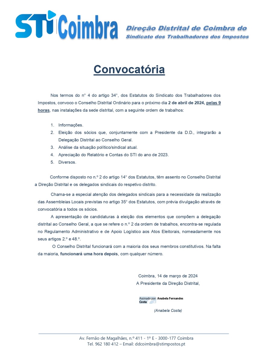 ELEIÇÃO DAS DIREÇÕES DISTRITAIS DE BEJA, BRAGA, CASTELO BRANCO, GUARDA, LISBOA, PORTALEGRE E VILA REAL