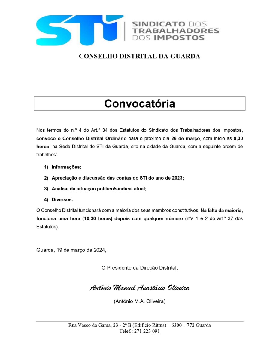 ELEIÇÃO DAS DIREÇÕES DISTRITAIS DE BEJA, BRAGA, CASTELO BRANCO, GUARDA, LISBOA, PORTALEGRE E VILA REAL