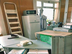 Há cadeiras partidas, salas sem piso, elevadores sem manutenção, que colapsam, problemas de esgotos. O pó e a sujidade são dificuldades diárias.