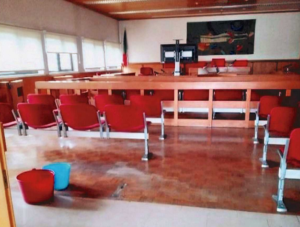 atendem os cidadãos. Baldes nas salas de julgamento são uma constante,