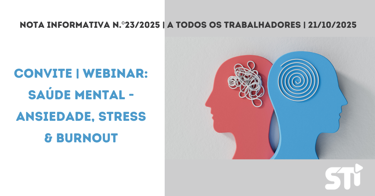 21 Out NOTA INFORMATIVA N.º 23/2025 – Convite | Webinar: Saúde Mental – Ansiedade, stress & burnout