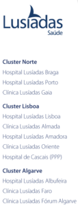 Informa-se que são as seguintes as Unidades do Grupo Lusíadas Saúde: