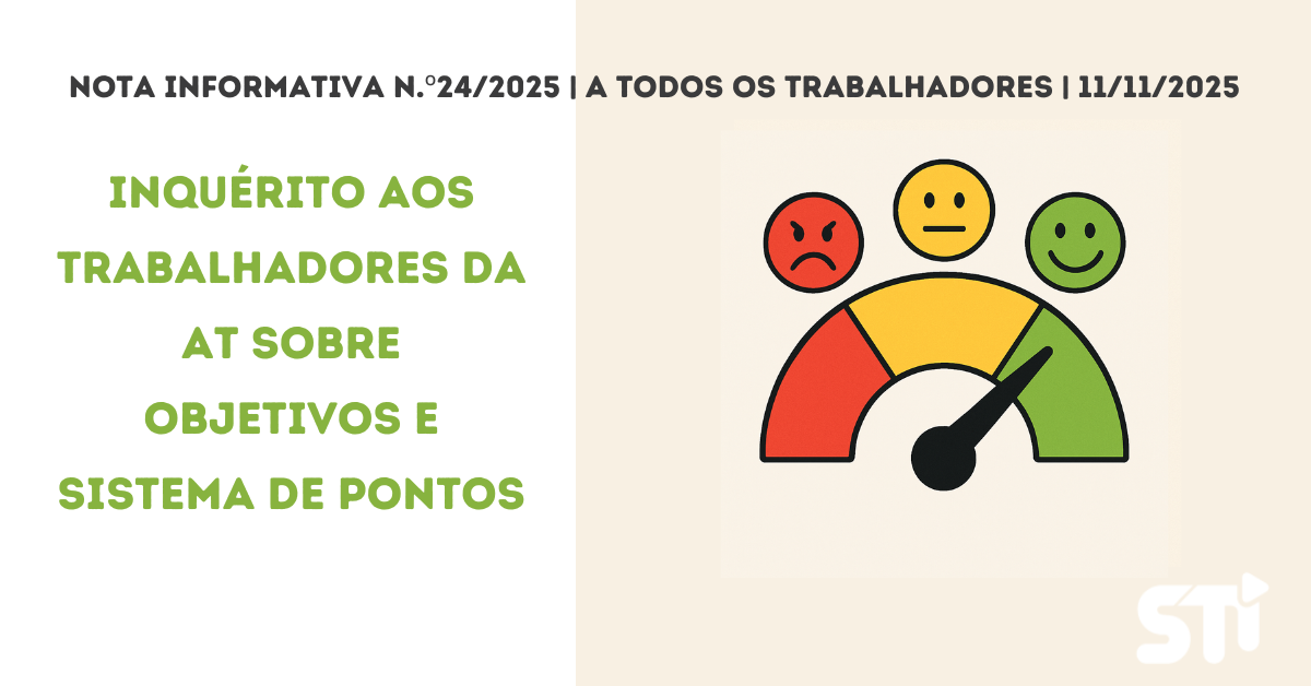 12 Nov NOTA INFORMATIVA Nº24/2025 | INQUÉRITO STI | INQUÉRITO AOS TRABALHADORES DA AT SOBRE OBJETIVOS E SISTEMA DE PONTOS
