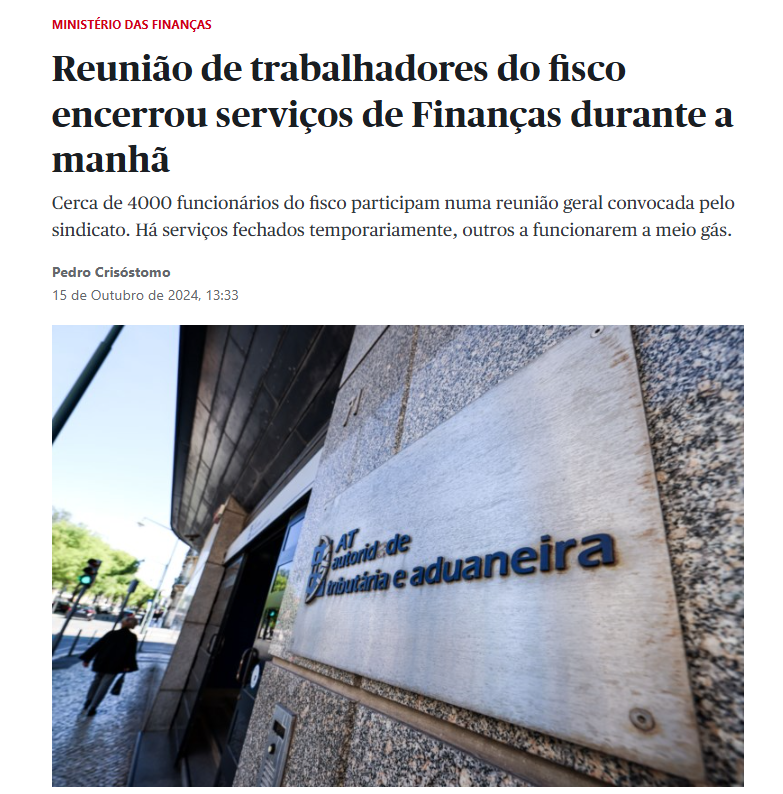 15 Out PÚBLICO | Reunião de trabalhadores do fisco encerrou serviços de Finanças durante a manhã
