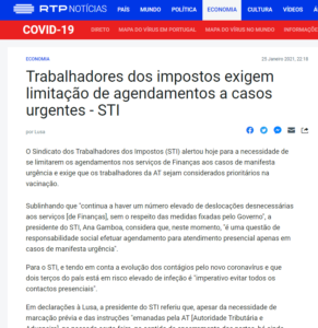 25 Jan RTP Notícias – Trabalhadores dos impostos exigem limitação de agendamentos a casos urgentes – STI