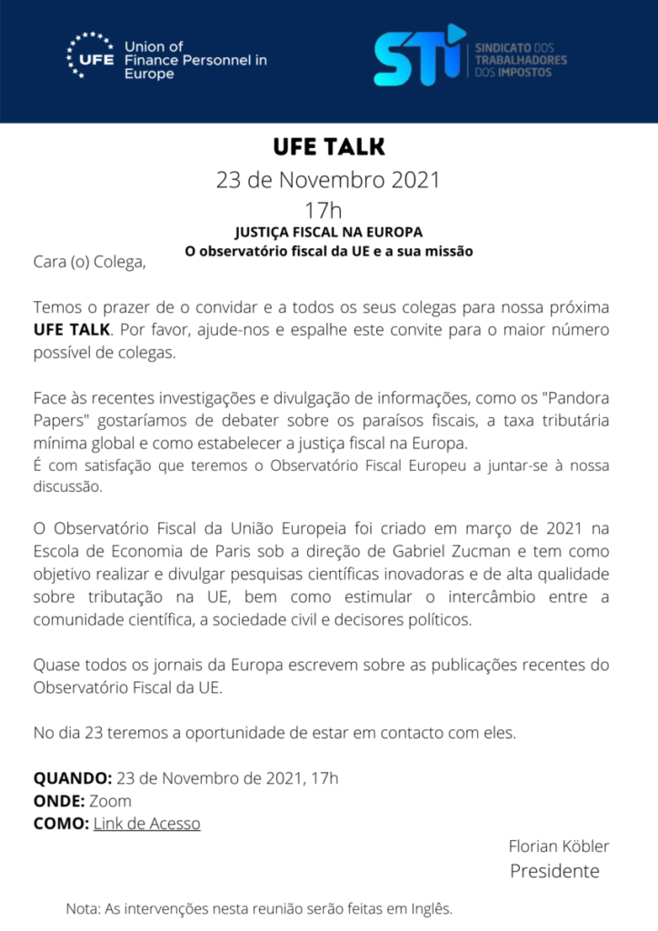 UFE TALK – Justiça Fiscal na Europa